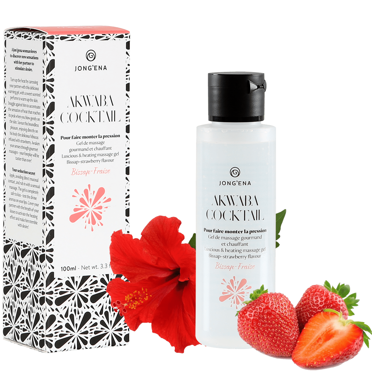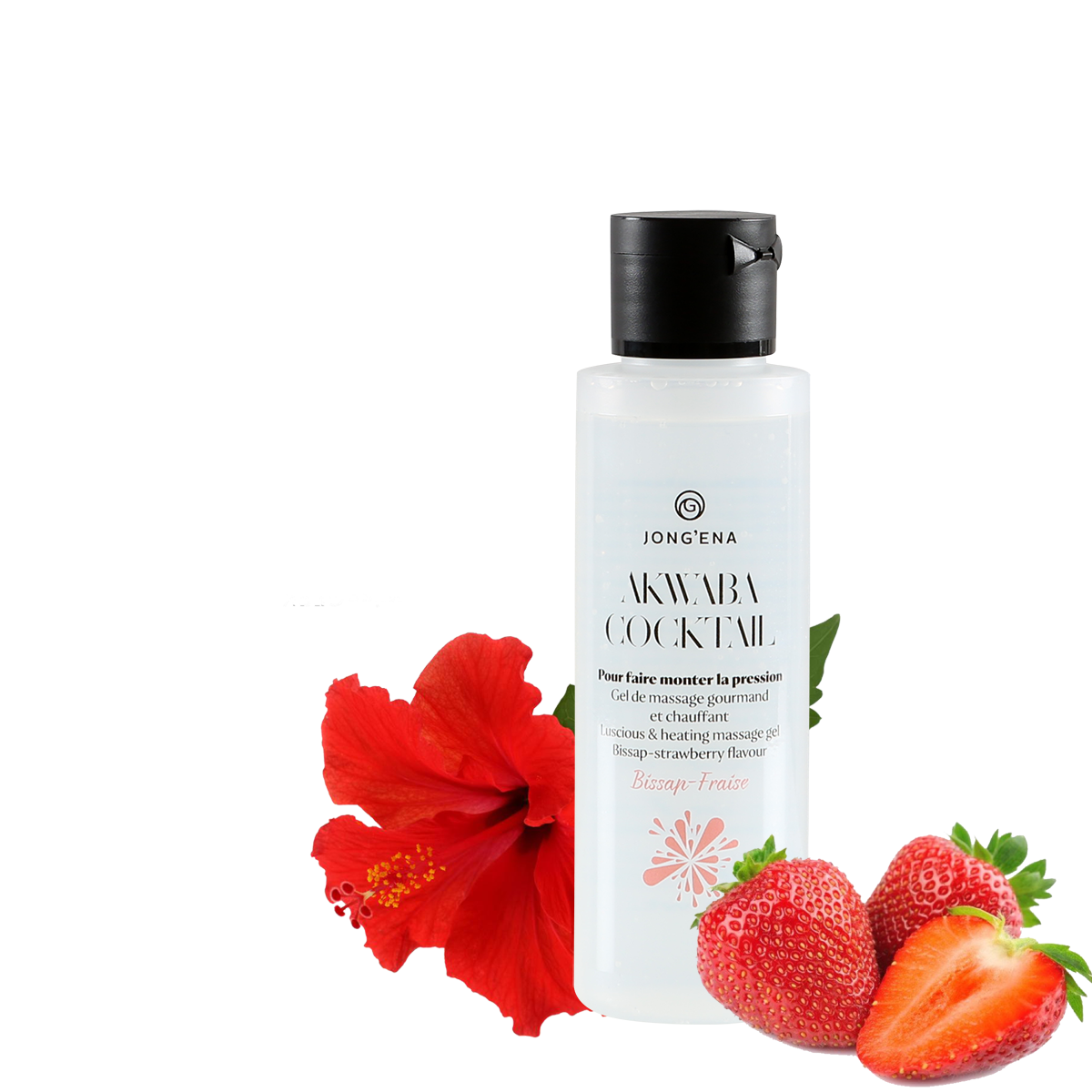 Offrez à votre moitié un irrésistible apéro coquin avec notre délicieux gel de massage aphrodisiaque Bissap Fraise de Jong’ena 100 ml.
