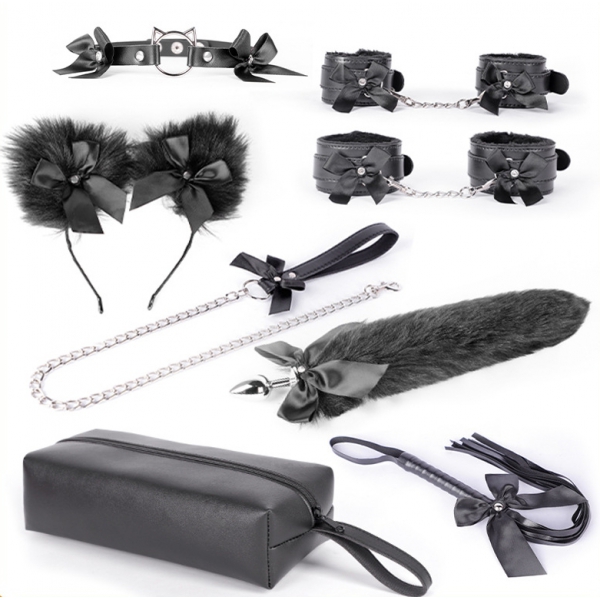 Mettez en scène vos fantasmes de jeux de rôles les plus coquins avec le joli Kit SM Bow Suit 7 Pièces Noir.