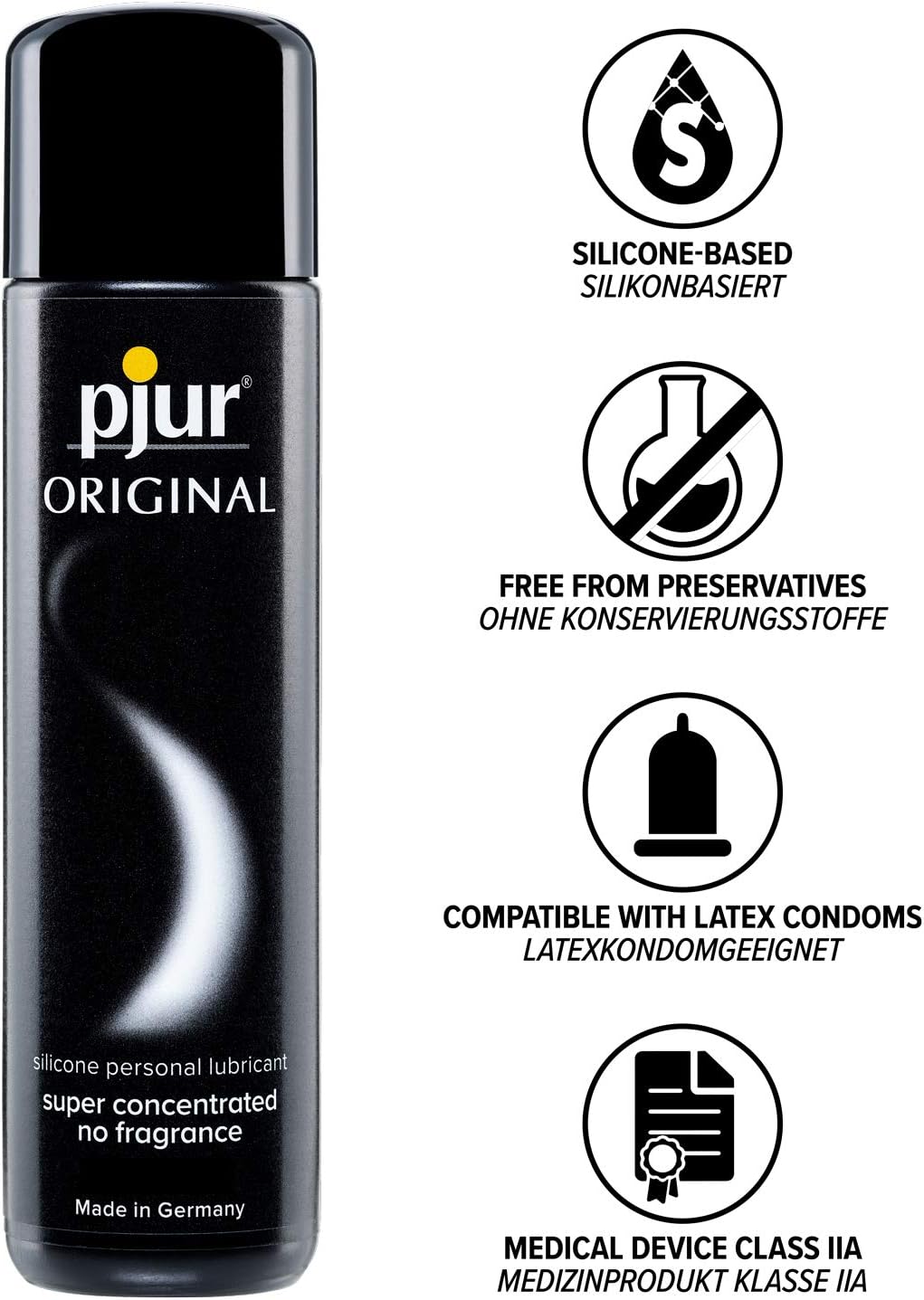Découvrez le célèbre Lubrifiant Silicone Original Pjur 100 ml pour faire monter l’excitation lors de vos préliminaires et rapports sexuels.