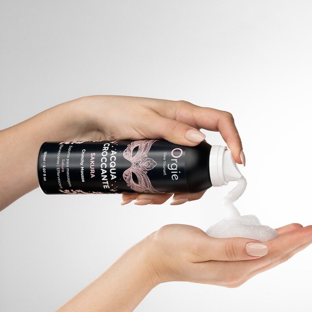 Surprenez votre partenaire en lui prodiguant un massage inoubliable, avec la sensationnelle Mousse Crépitante Acqua Croquante Sakura d’Orgie.